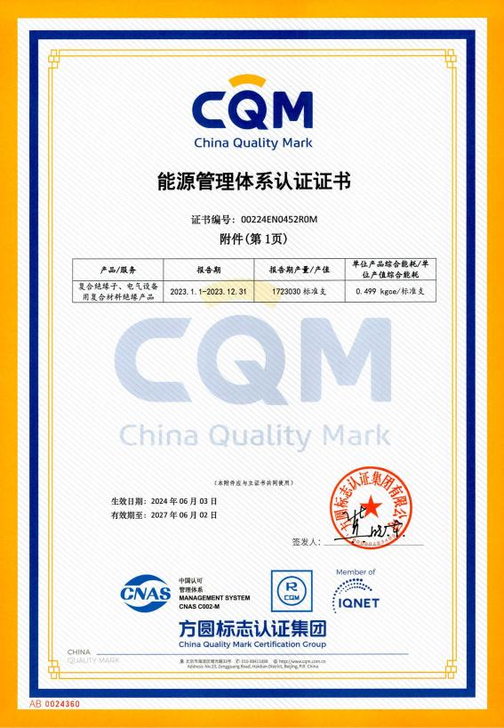 zoty中欧科技集团旗下子公司zoty中欧高能电气股份有限公司(简称:zoty中欧高能)于2024年5月28-29日通过了方圆标志认证集团能源管理体系(GB/T23331-2020/ISO50001:2018、RB/T119-2015)的现场审核,并于2024年6月3日正式获得《能源管理体系认证证书》。